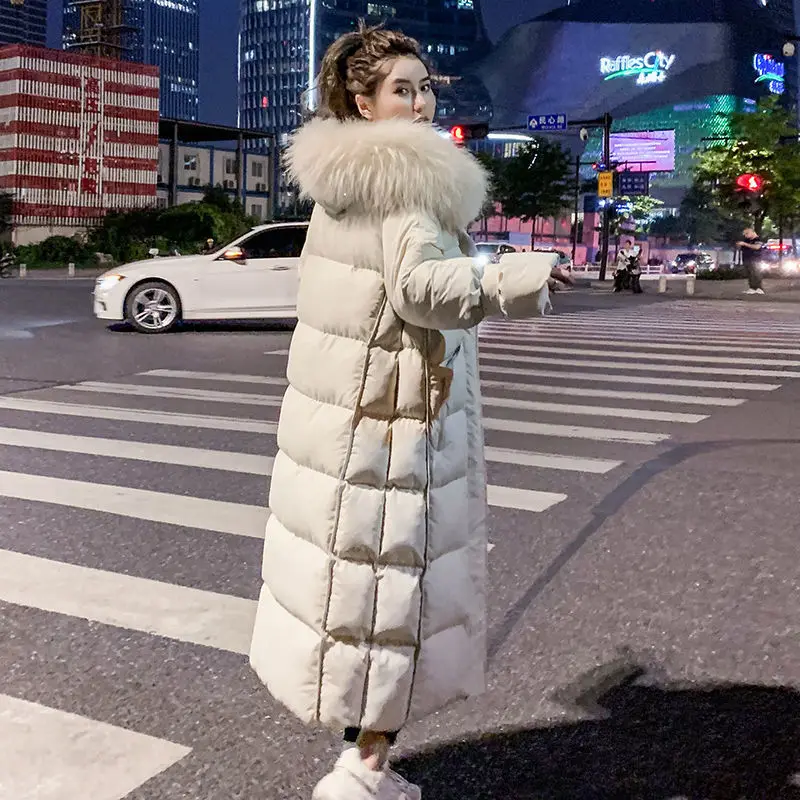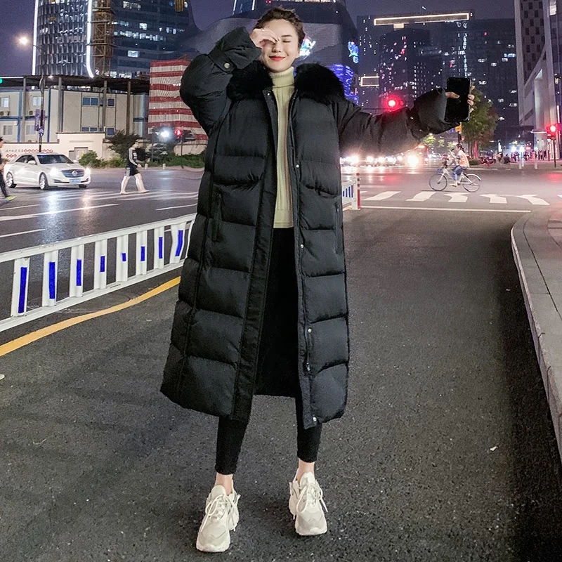 2025 Winter Coat Women Over Knee Loose Hooded Parkas Thick Warm Long Coat Detachable Fur Collar Cotton Padded Jacket Outwear