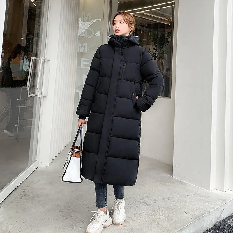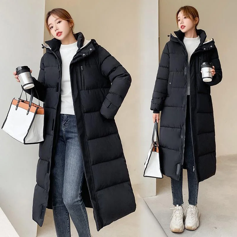 2025 Women’s Thickening Lengthening Coats Warm Slim Woman Hooded Over-the-knee Long Jackets Winter Korean Cotton-padded Coat