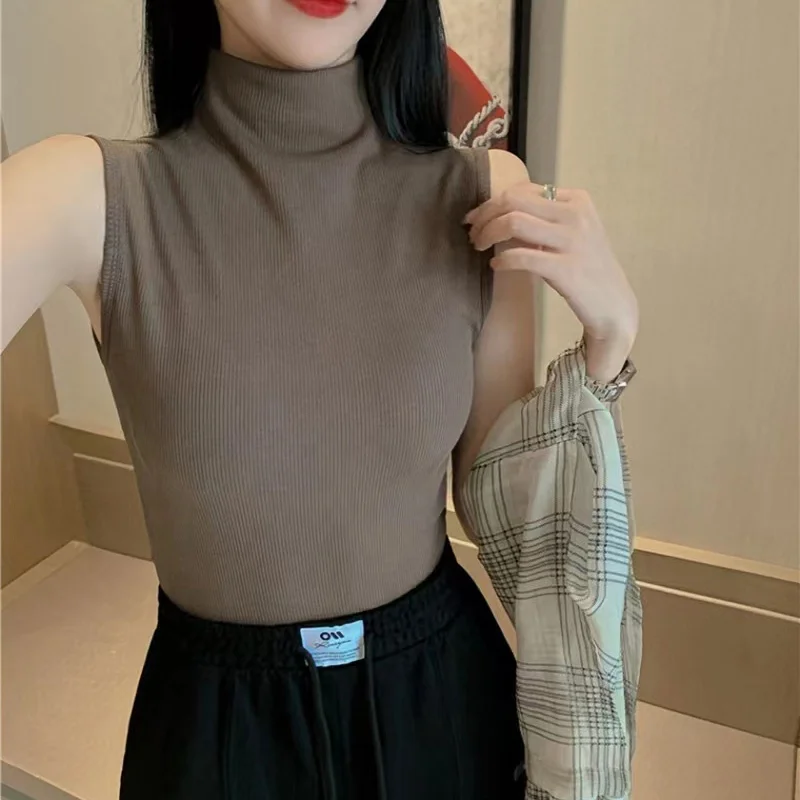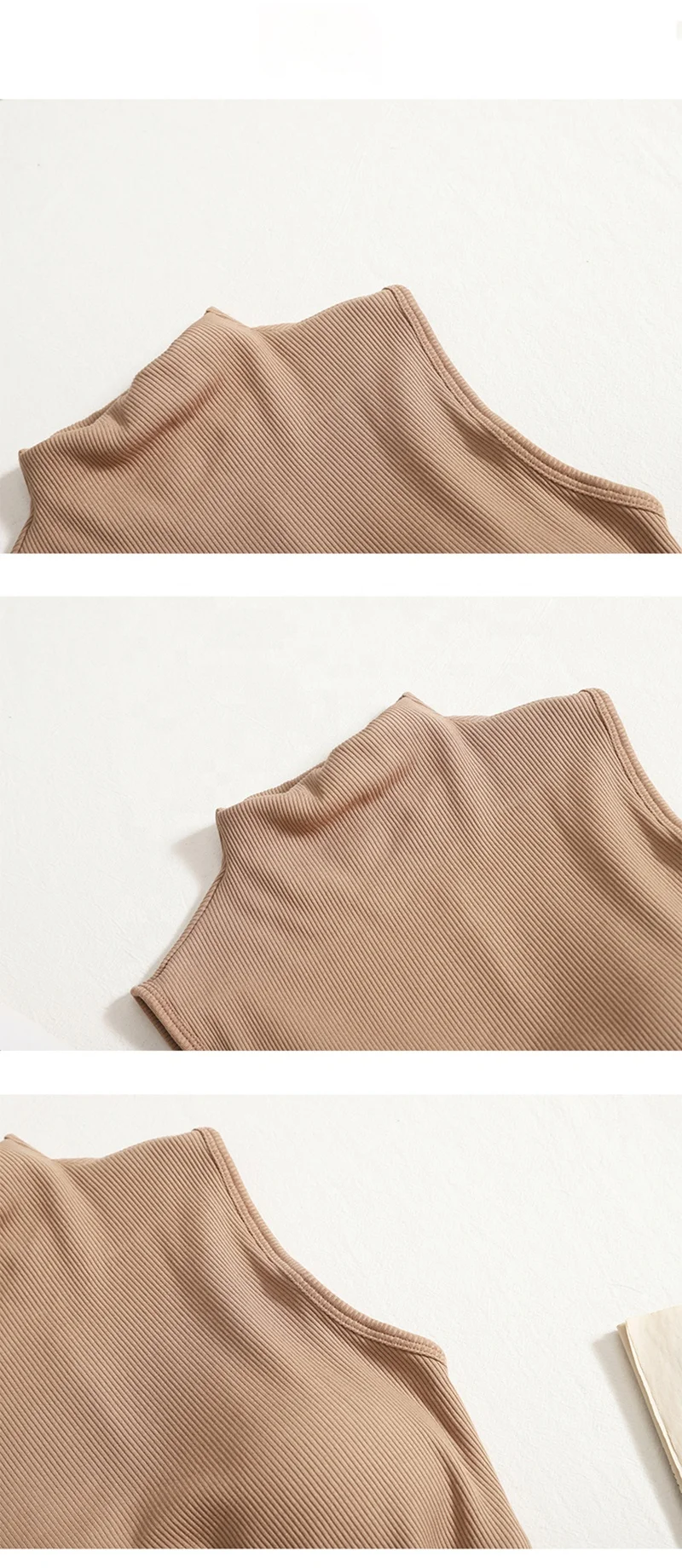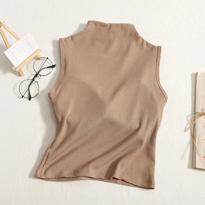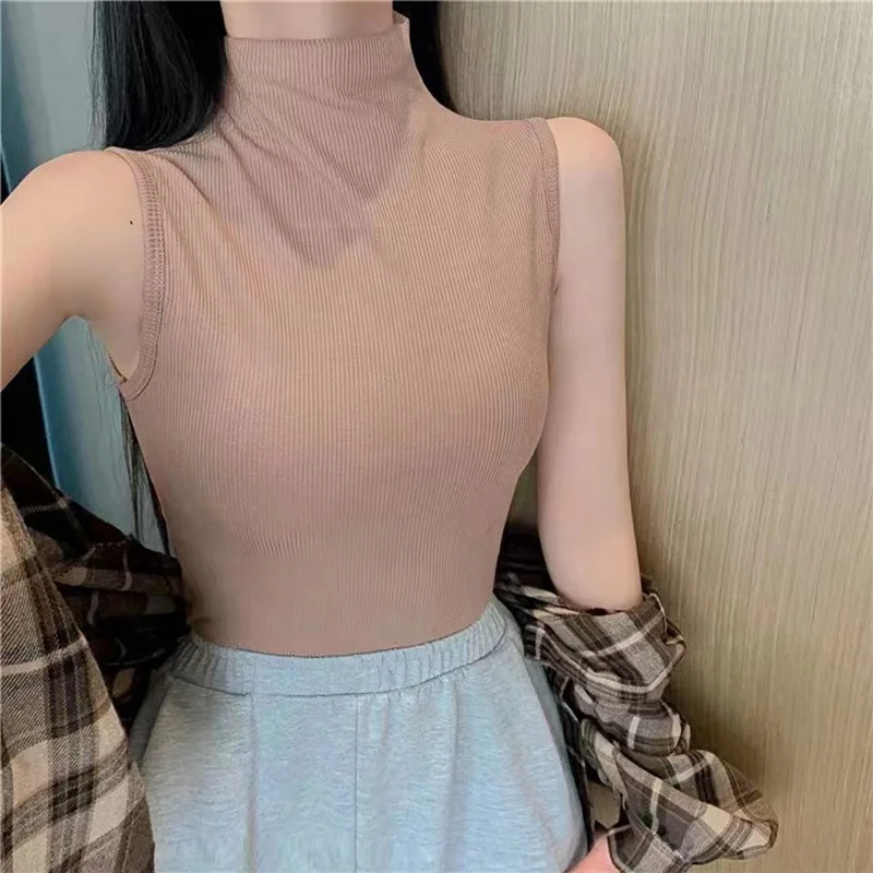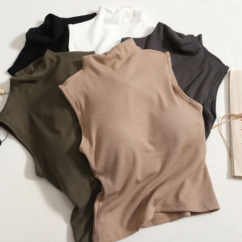 Autumn Women Mock Neck Tank Tops With Bra Pad Casual Crop Tops Screw Thread Sleeveless Camisole for Women Winter