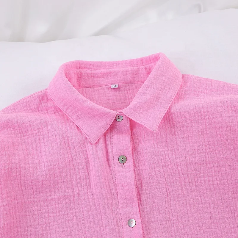 Casual Sleepwear Cotton Pajamas for Women Sets Suit Turn-down Collar Nine Quarter Sleeve Sleep Tops Shorts Female Homewear