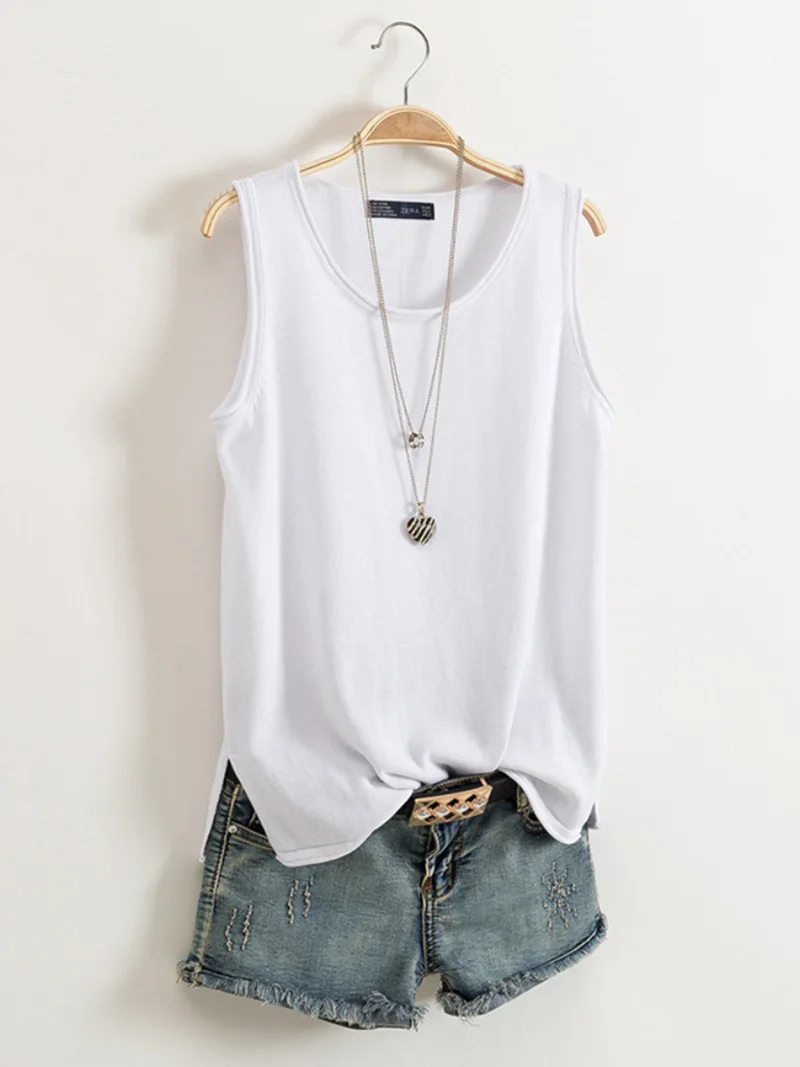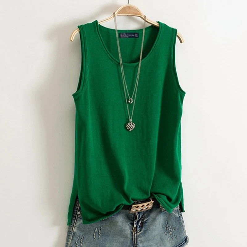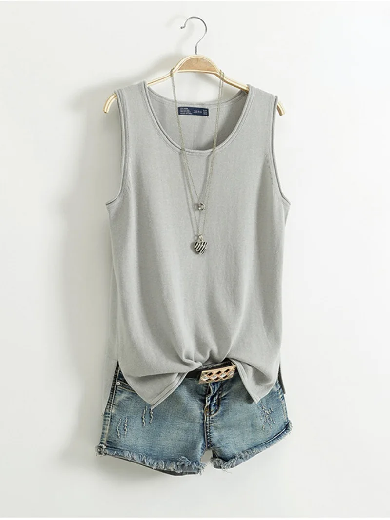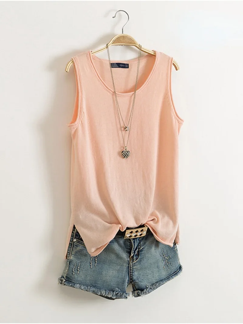 Cotton and Linen Camisole Women’s 2025 Summer New I-shaped Sleeveless Knitted Bottoming Shirt Short Outer Wear Loose Top Solid
