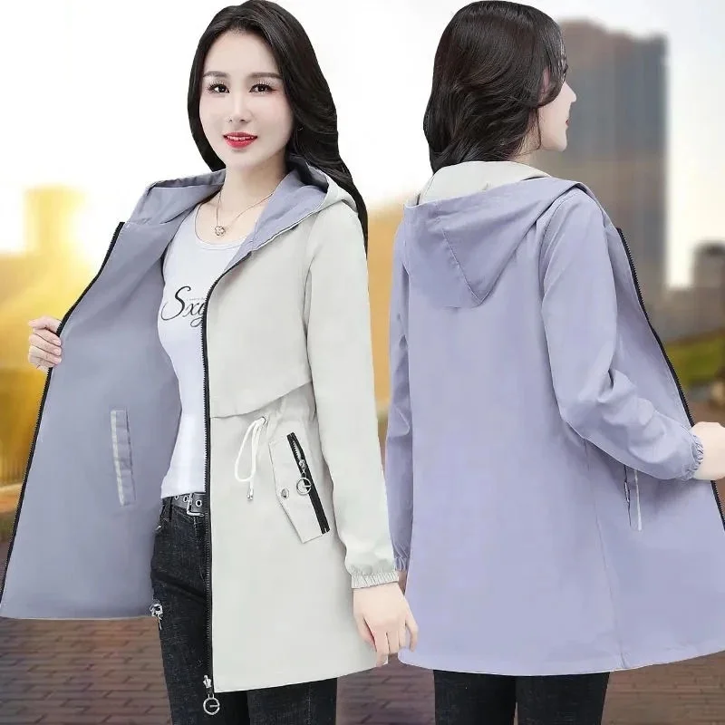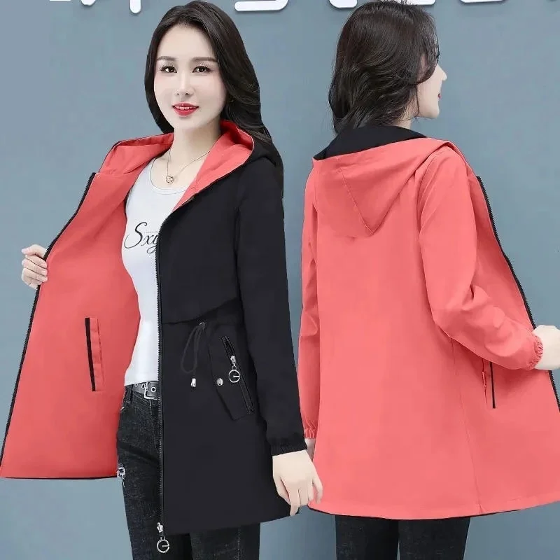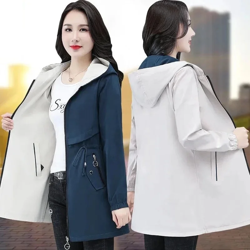 Double-Sided Trench Coat Women 2025 New Spring Autumn Clothes Hooded Large Size Long Windbreaker Jacket Female Outerwear Tops