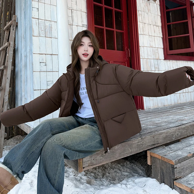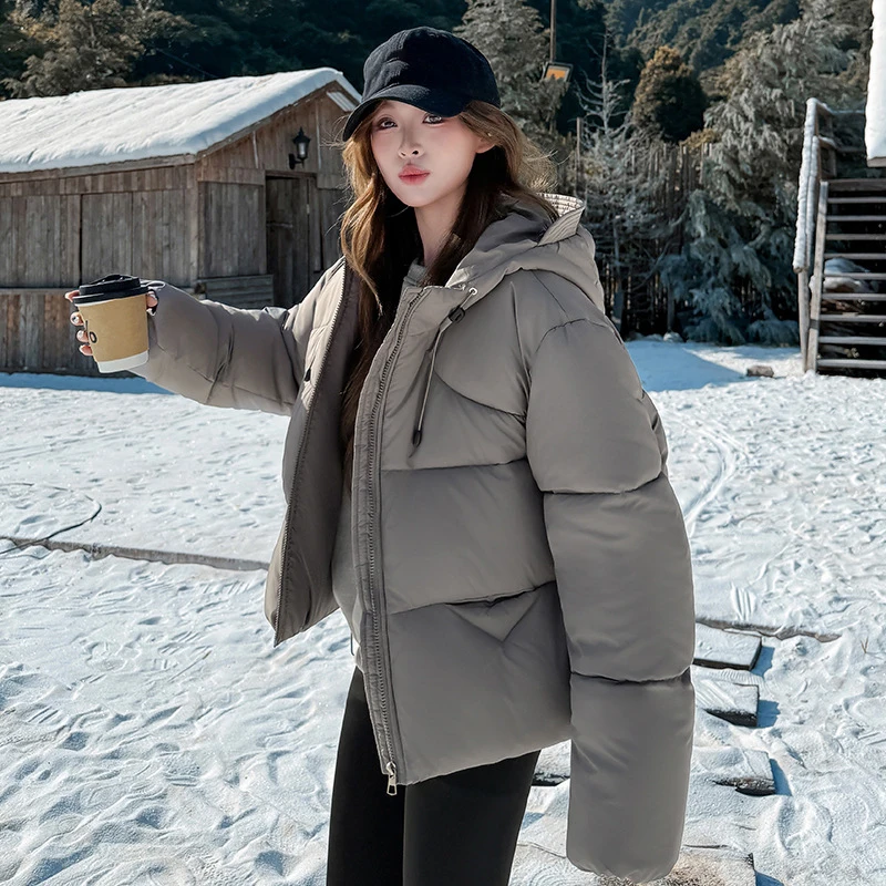 Fashion Hooded Down Cotton Coat Fluffy Women 2025 New Winter Warm Puffer Coat Lightweight Long Sleeve Female Parkas Snow Outwear