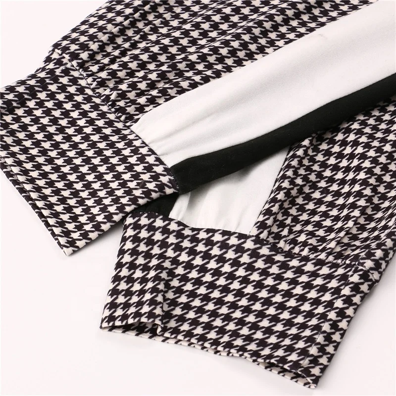 Fashion Women Sets Short Sleeve Tops High Waist Pants 2 Piece Sets Outfits Black Pattern Stitching Long Pants Sets Suit