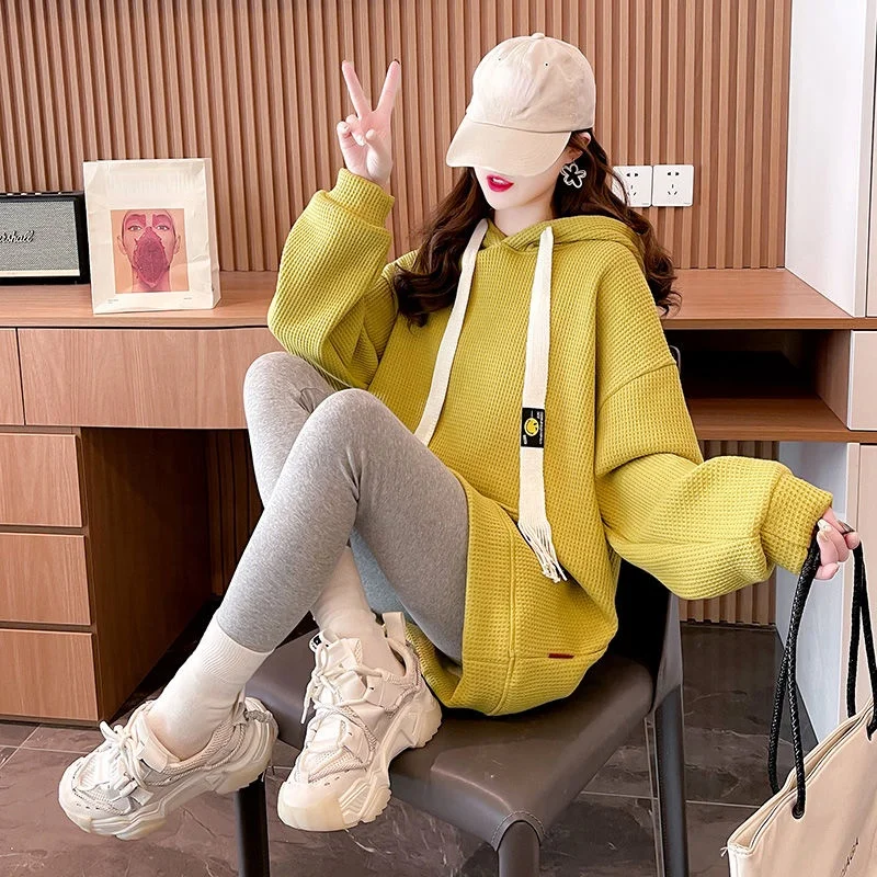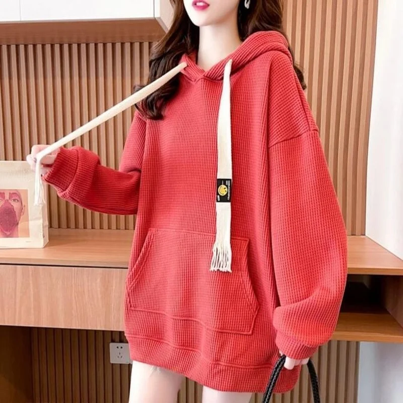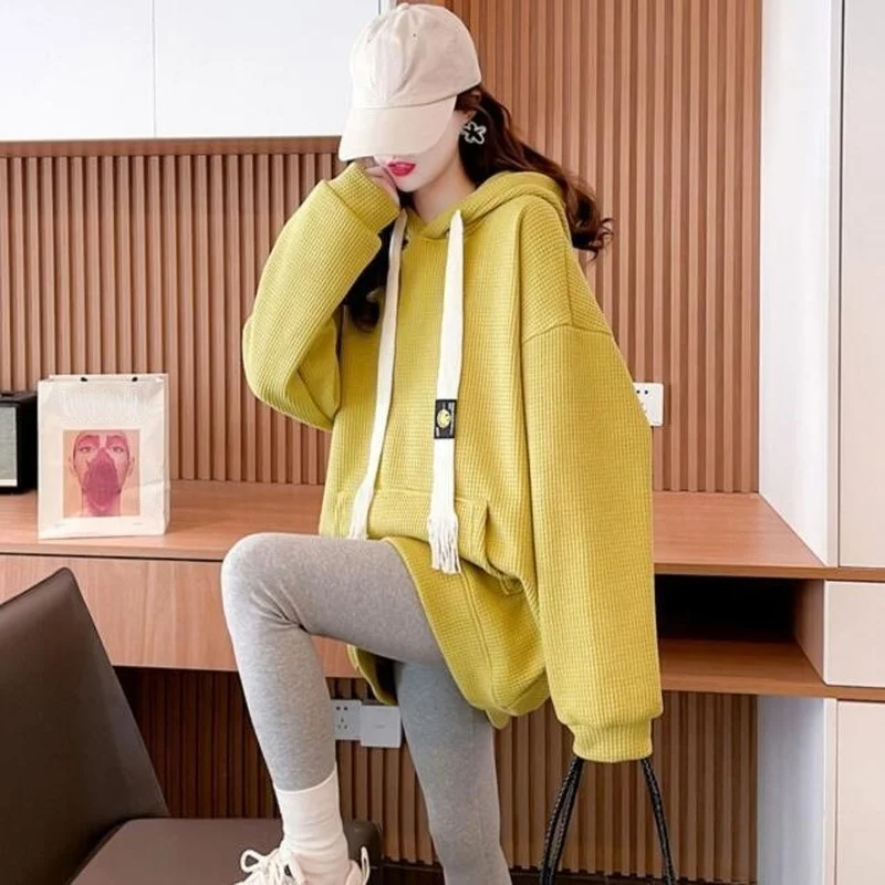 Hoodies Plain Long Hooded Top Yellow Women’s Sweatshirt Red Warm Korean Fashion Y 2k Vintage Y2k Trend Matching E Woman Clothing