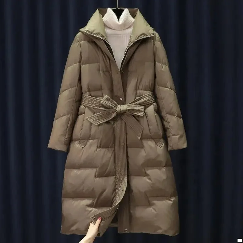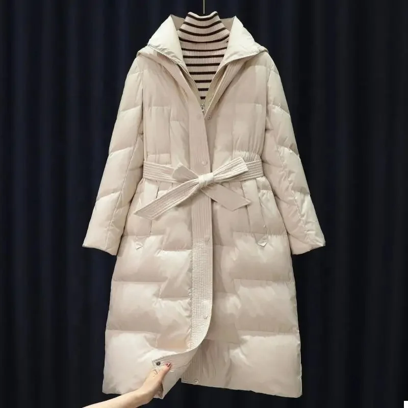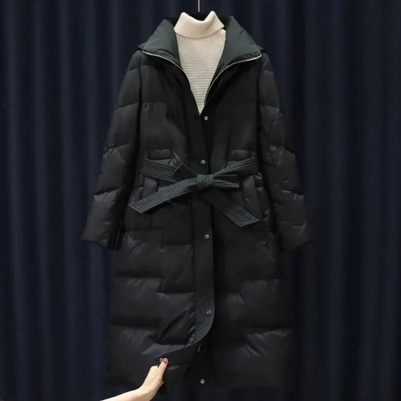 M-2XL Womens White Duck Down Jacket Winter Female Coats Zipper Hooded X-long Slim Tidal Current Keep Warm Ladies Outerwear H222