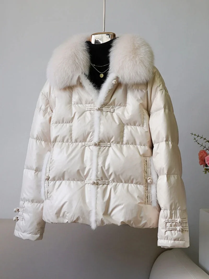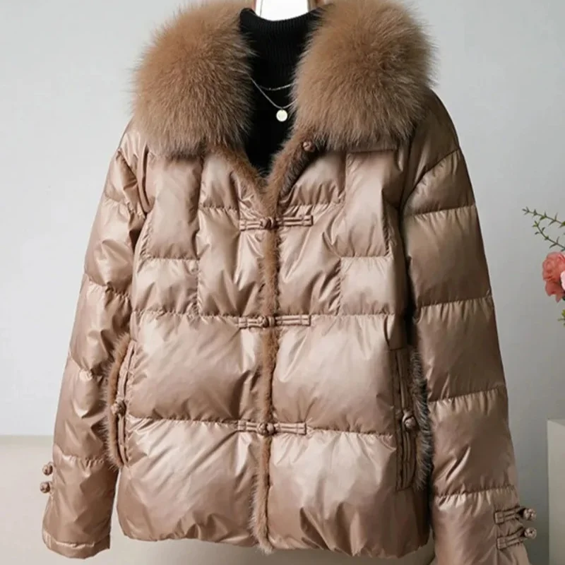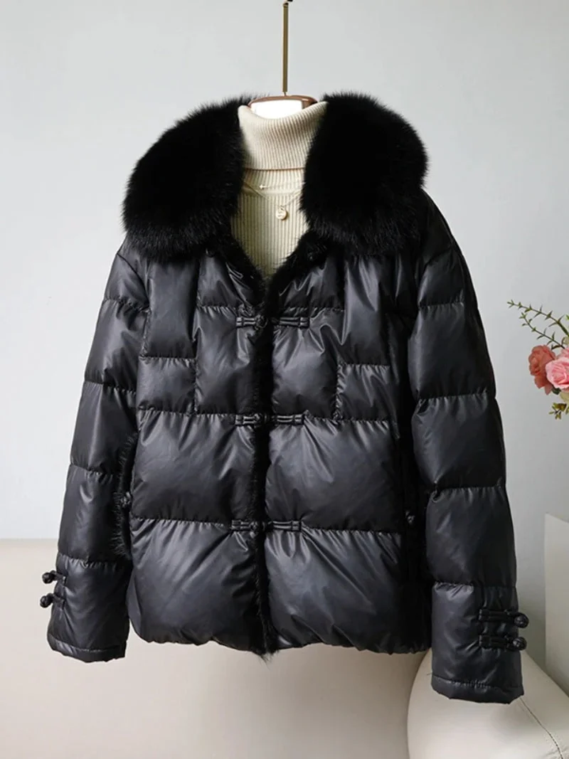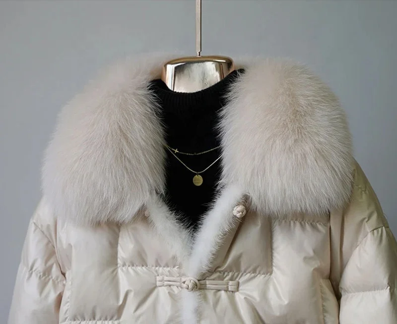 Natural Real Fox Fur Collar 90% Duck Down Coat Streetwear Mink Hair New Fashion Winter Jacket Women Thick Warm Down Jacket Women