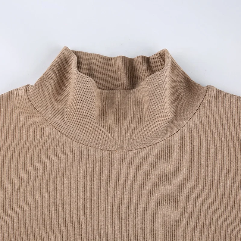 Solid Nude-Turtleneck Cropped T Shirt Women Autumn Casual Long Sleeve T-shirt Ladies Skinny-Basic Tee Shirt Femme