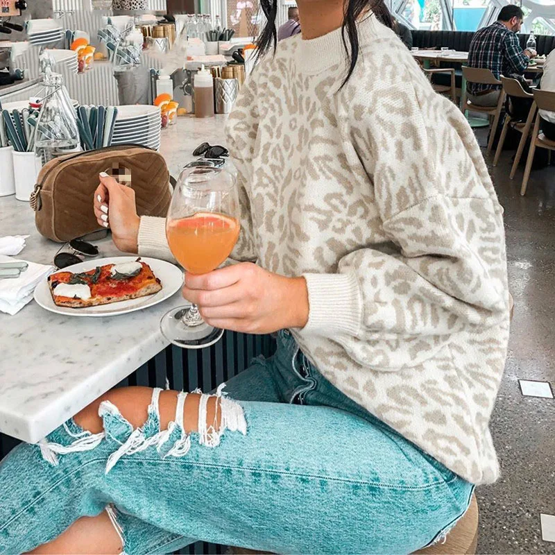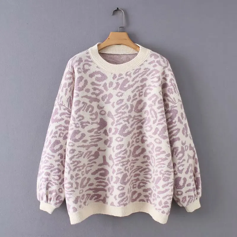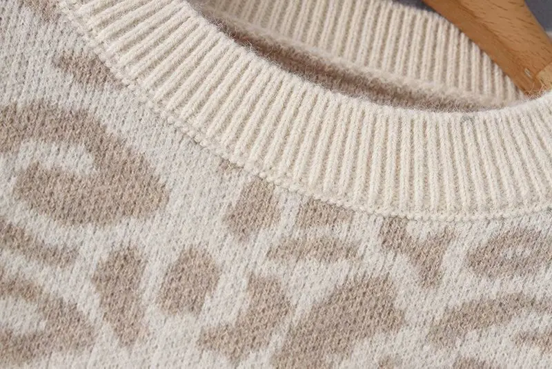 Sweater Women Crew Neck Leopard Knitted Sweater Animal Print Winter Thick Female Pullovers Casual Tops Oversized Sweater