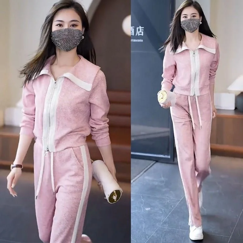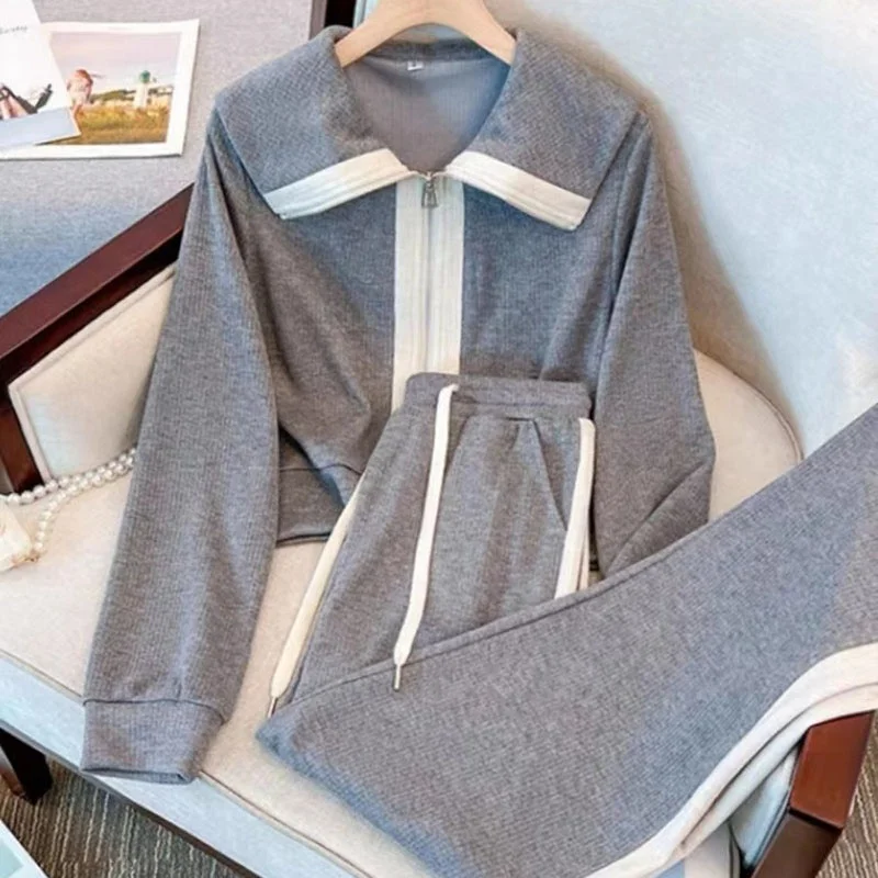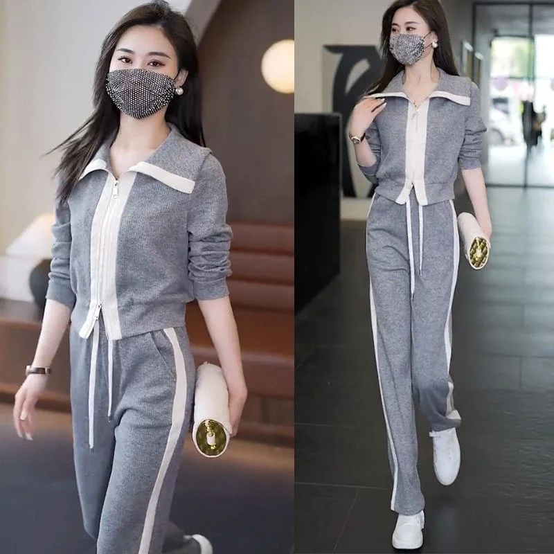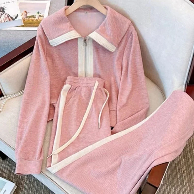 Vintage Tweed Style Women’s Casual Sports Suit Autumn New Arrival Age-Reducing Fashionable Bell Bottoms 2-Piece Set