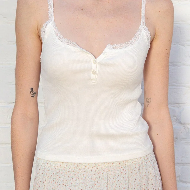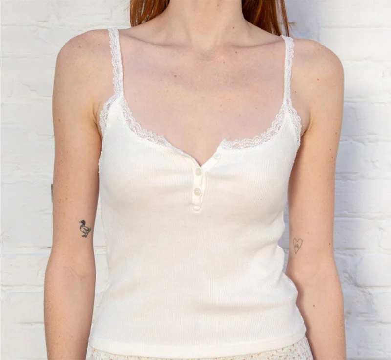 Vintage White Lace Ribbed Top Women Summer Casual Sexy Sleeveless Button Tank Blouses Sweet Chic Cotton Camis Tops Women 2025