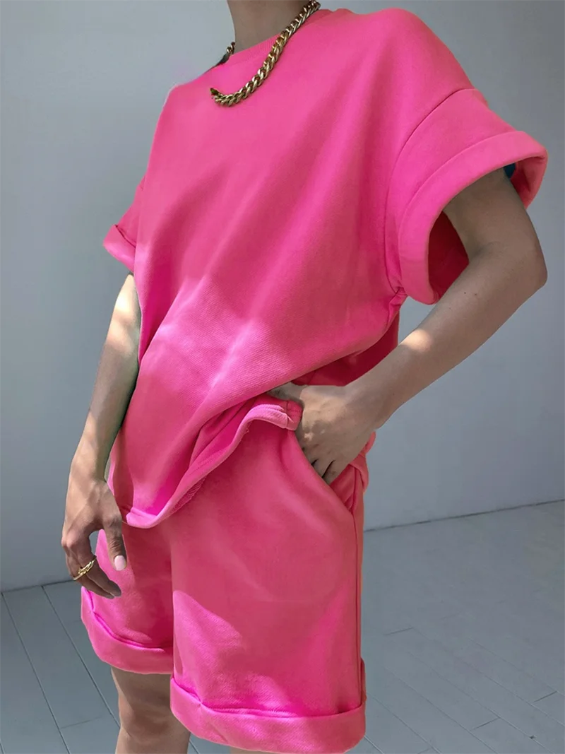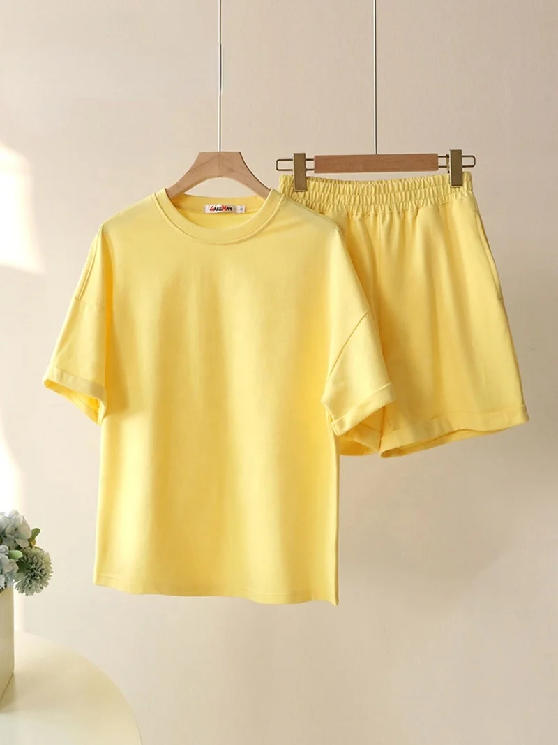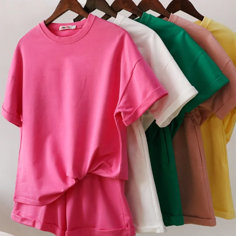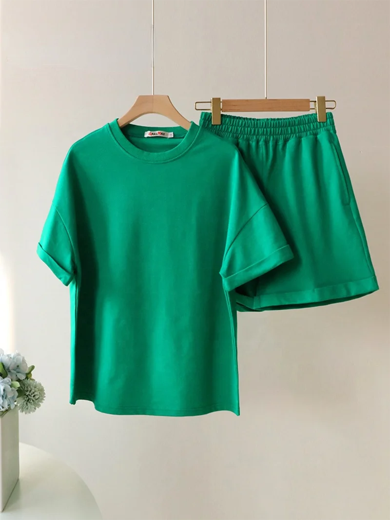 Women Classic Tracksuit Casual Green Suit Shorts With T-shirt for Women and Top Loose Oversize Summer Two Piece Sets