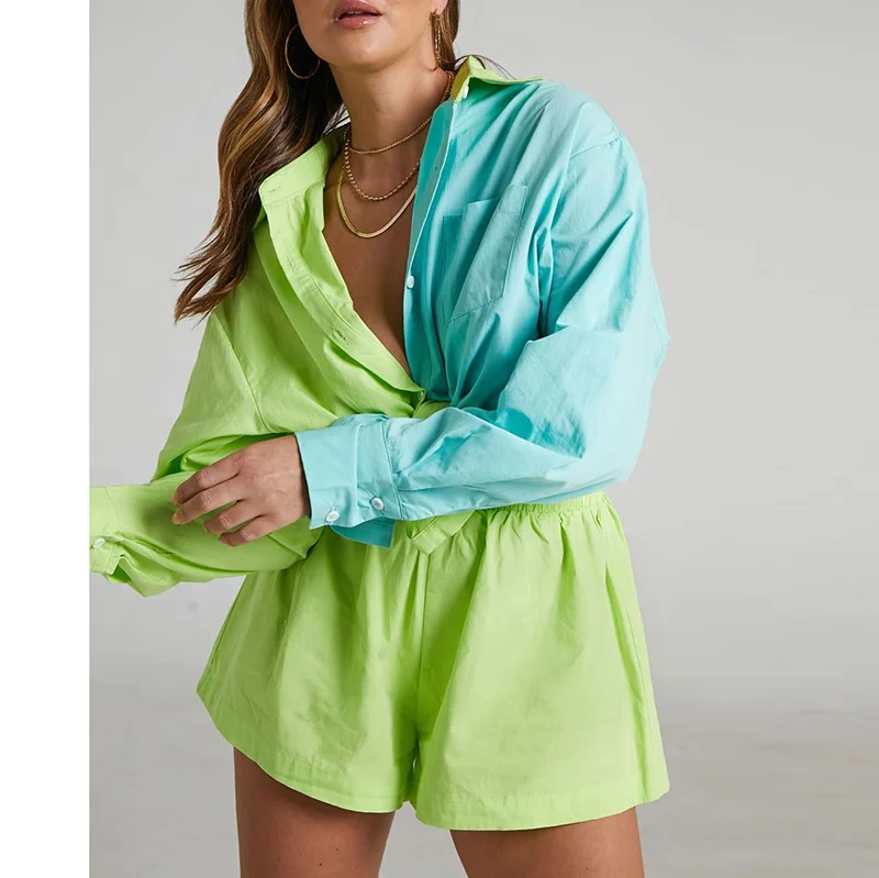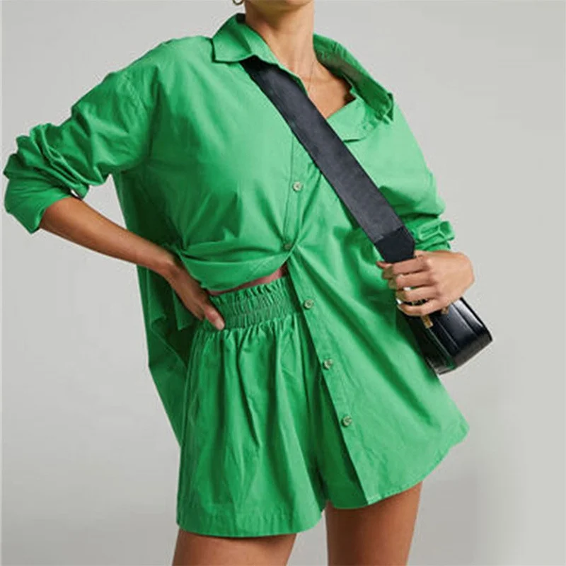Women Tracksuits Shirt With Mini Shorts Cotton Two Pieces Sets Fashion Clothing Outfits Women Blouses Fashion Tracksuits