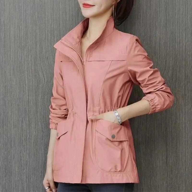 Women’s Double Layer Trench Coat Fall Casual Slim Coat Stand Collar Ladies Jacket Windbreaker Autumn Plus Size 4XL Collar