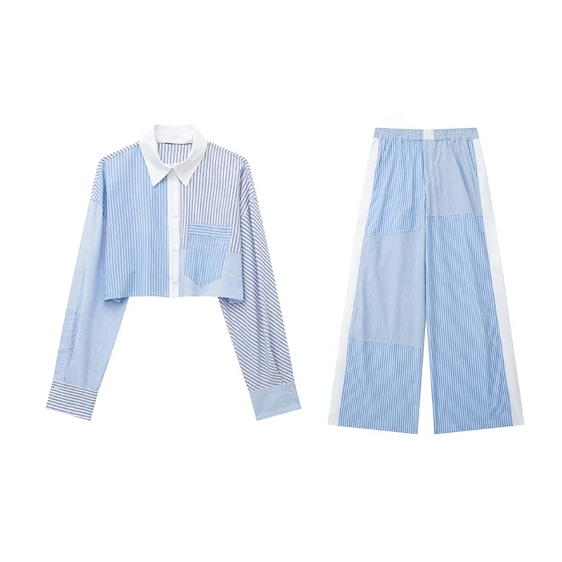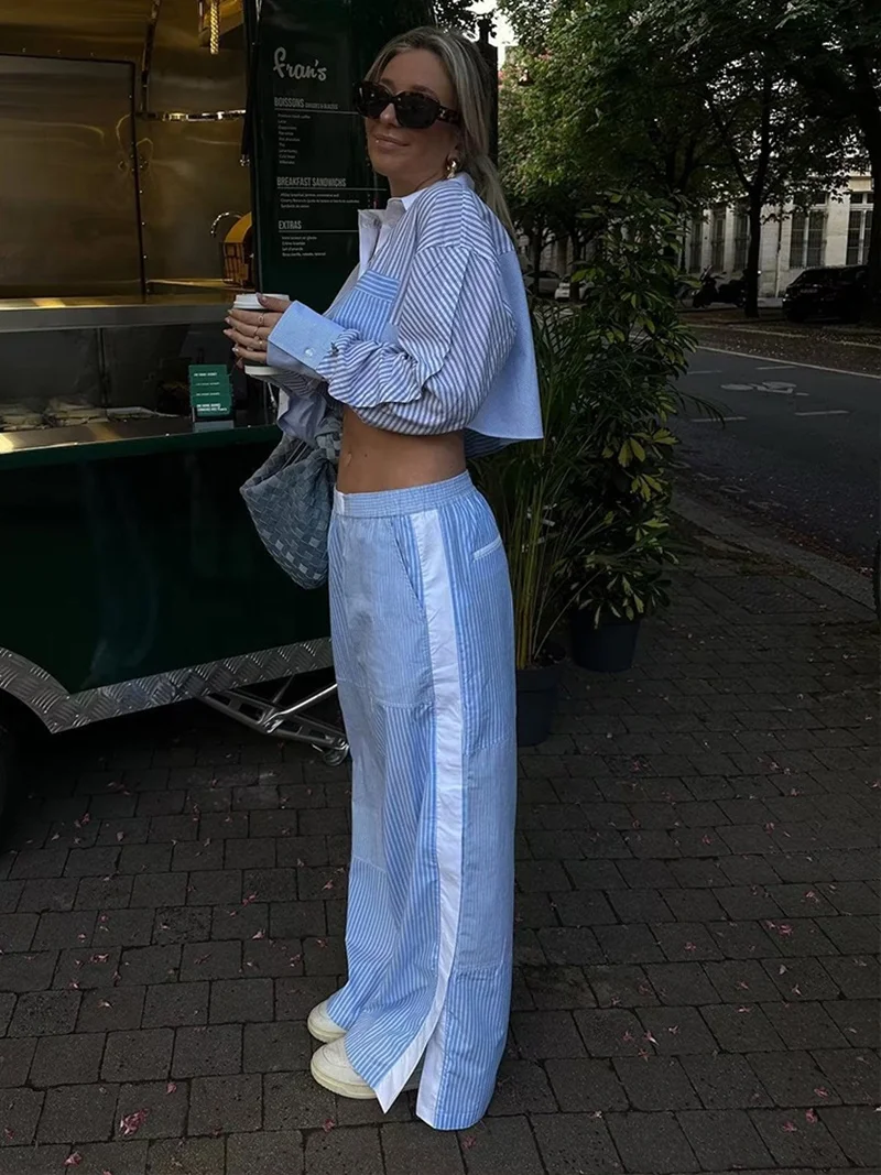 Women’s Sets Fashion Patchwork Stripe Short Shirts + Shorts Suit Female Elastic Waist Trousers Woman 2 Piece Set Womens Outifits
